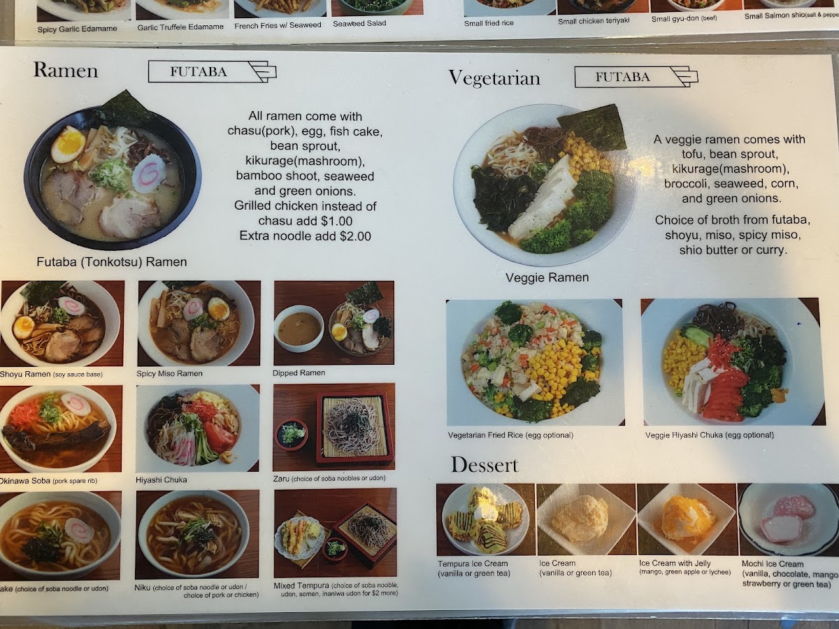 Finish your culinary journey with a sweet indulgence of Tempura Ice Cream or Mochi Ice Cream. With attentive service and a warm atmosphere, Futaba invites you to explore the heart of Japanese cuisine right in your neighborhood.